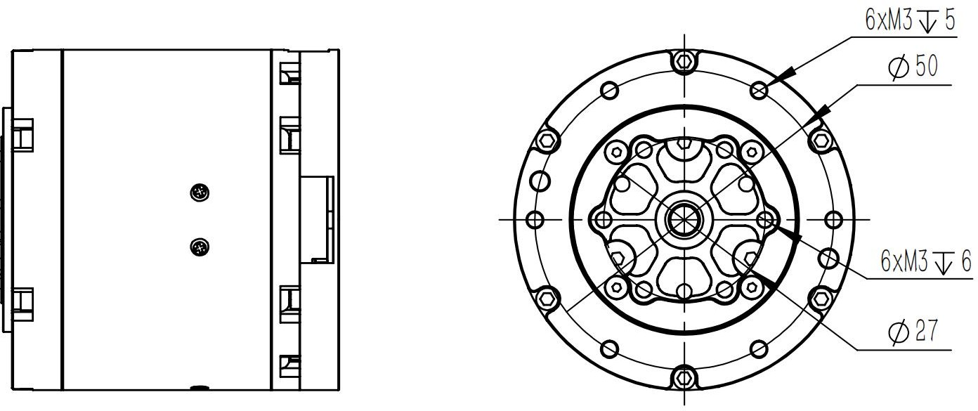 モーター取付穴のサイズと位置を参照し、対応する装置にモーターを取り付けてください。